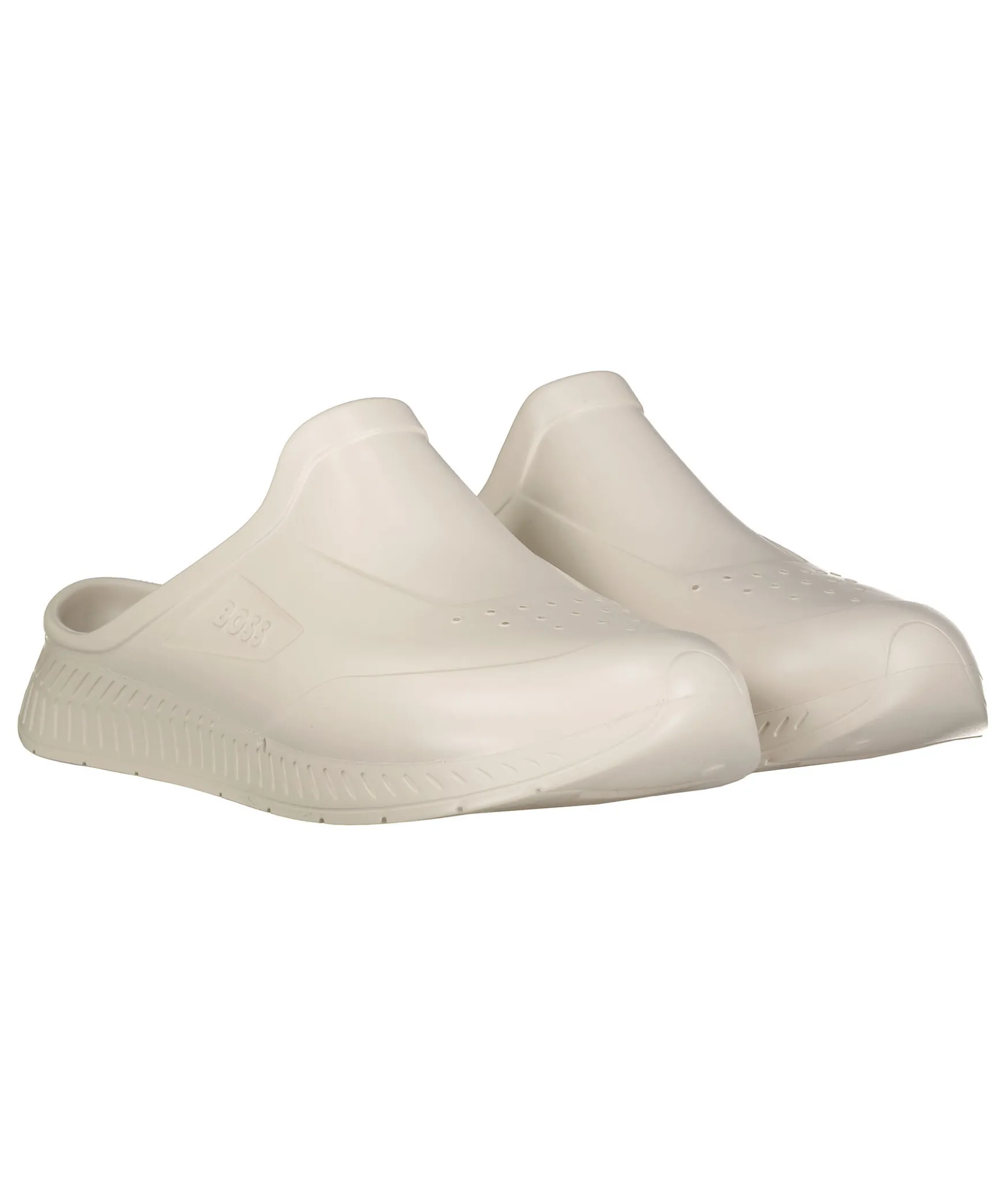 Off-White Slip In Tofflor I Gummi Fran Boss Black. Logotyp Embossad Pa Yttersidan. Detaljer Med Hal Vid Sulan.