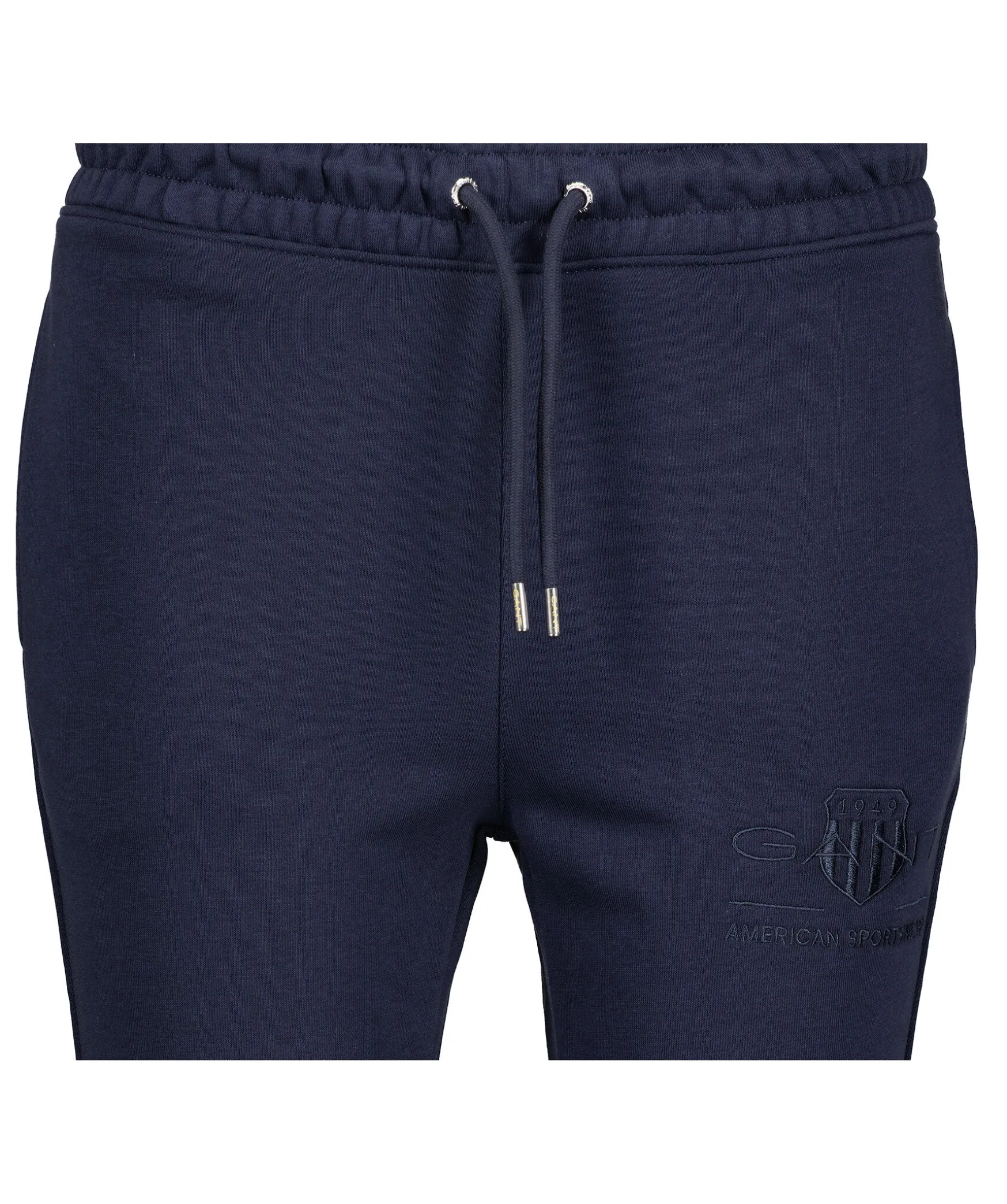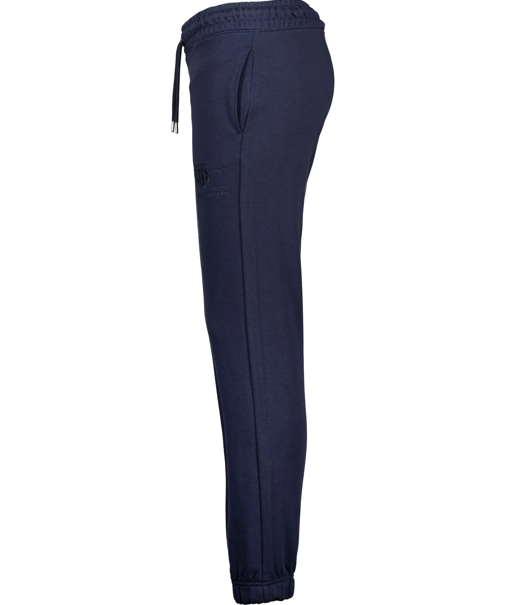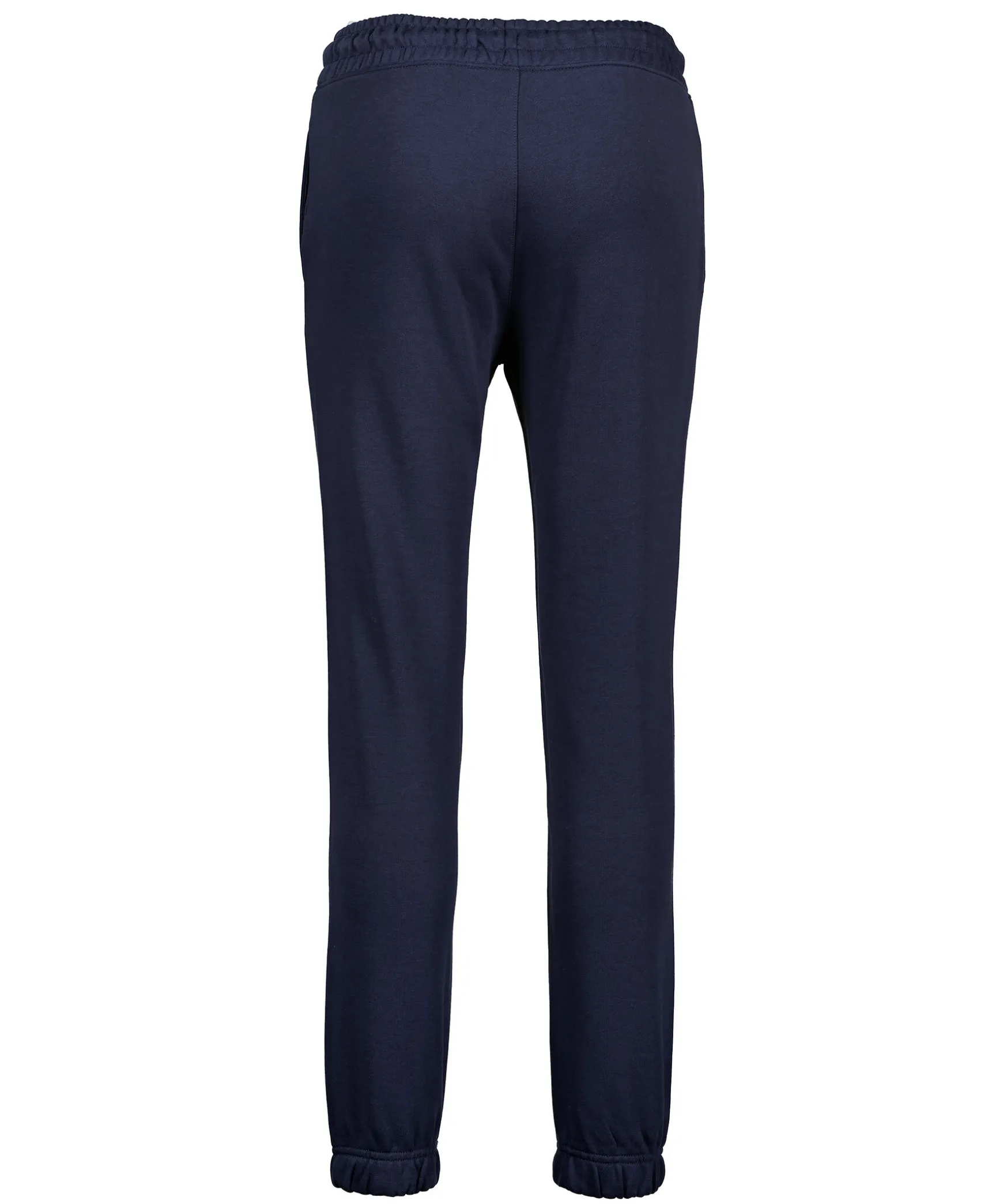 Marinbla Mjukisbyxor Fran Gant. Mudd Och Snorning I Midjan Samt Muddar I Benslut. Tva Framfickor, En Bakficka Samt En Liten Broderad Logotyp Pa Vanster Byxben. Tillverkade I Bomullsblandning.