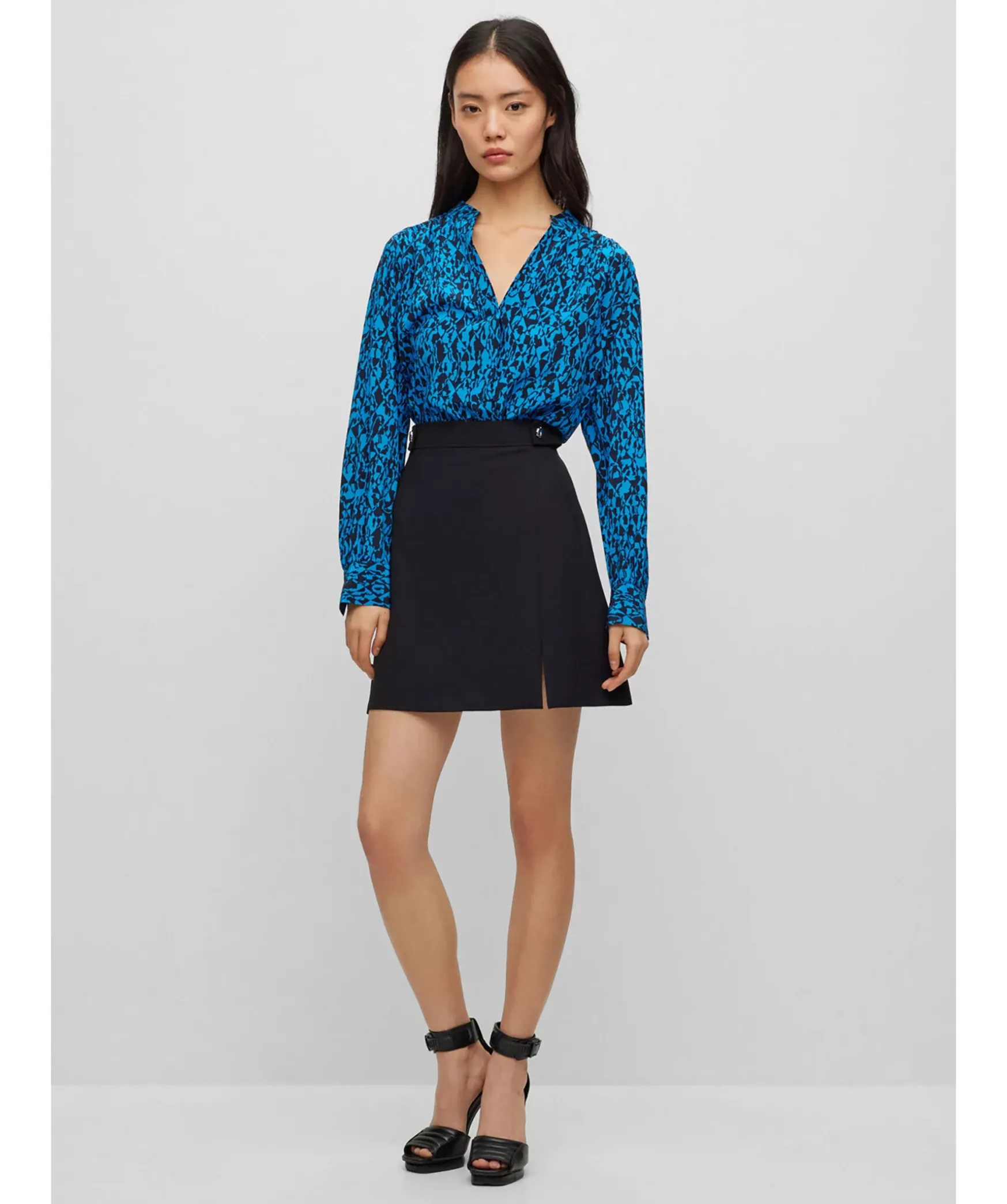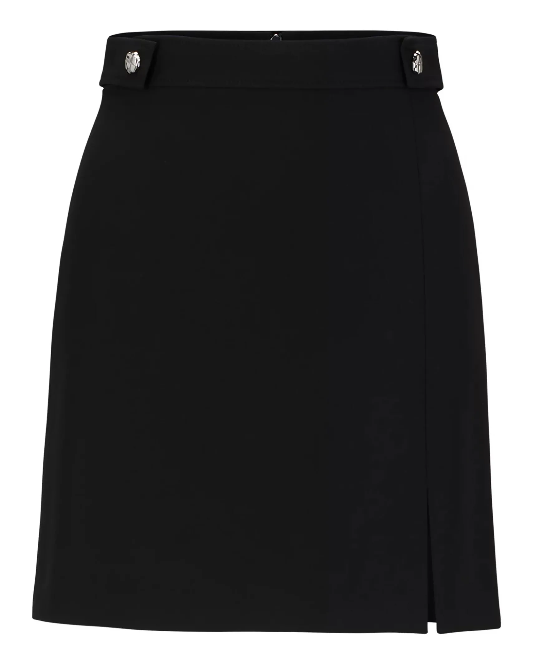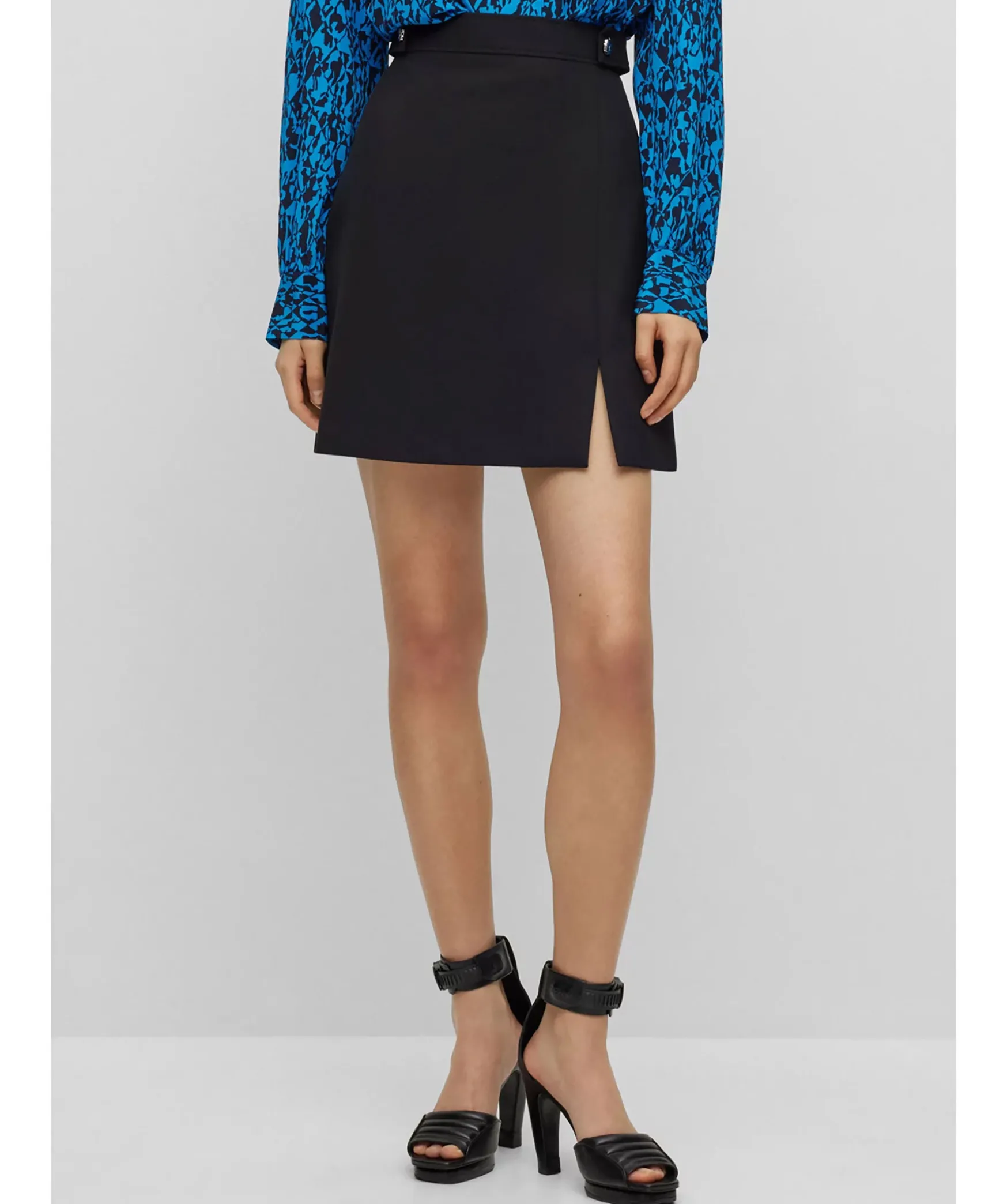 Svart Kjol Fran Boss Black. A-Linje Kjol Skuren Till Normal Passform I Stretchmaterial Med Hardvara I Midjan Fran Boss Womenswear. Dragkedja Baktill Samt Slits Framtill.