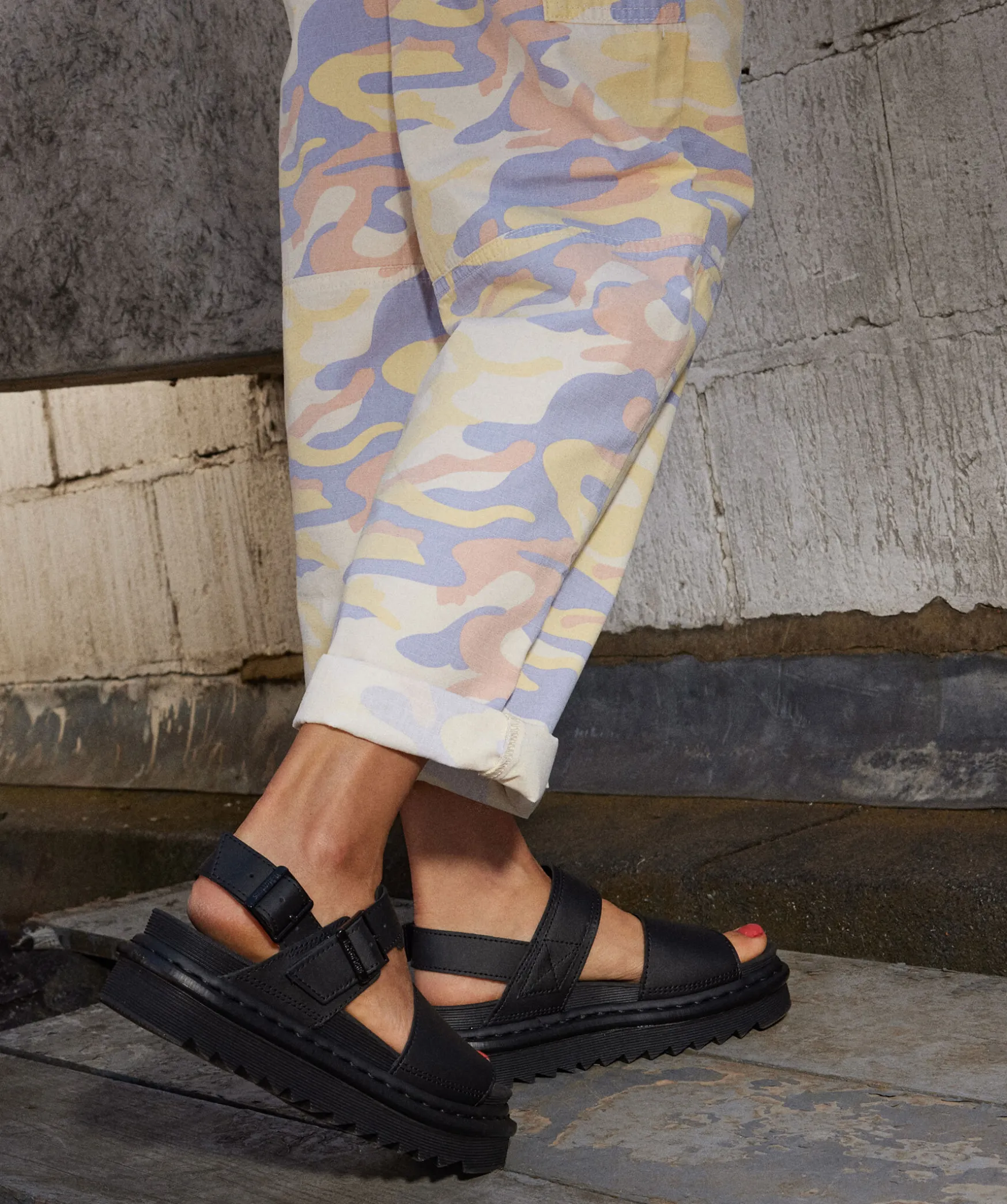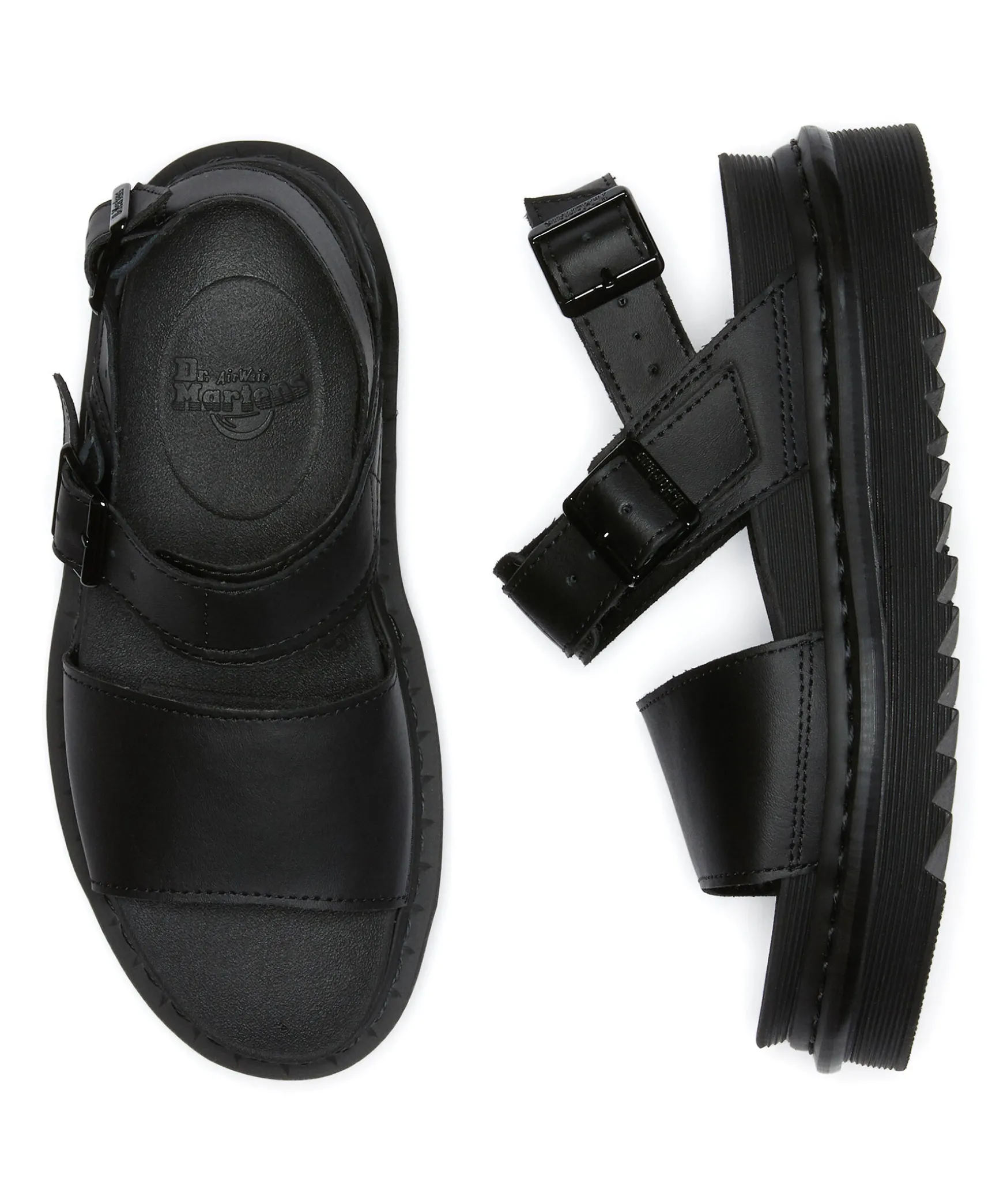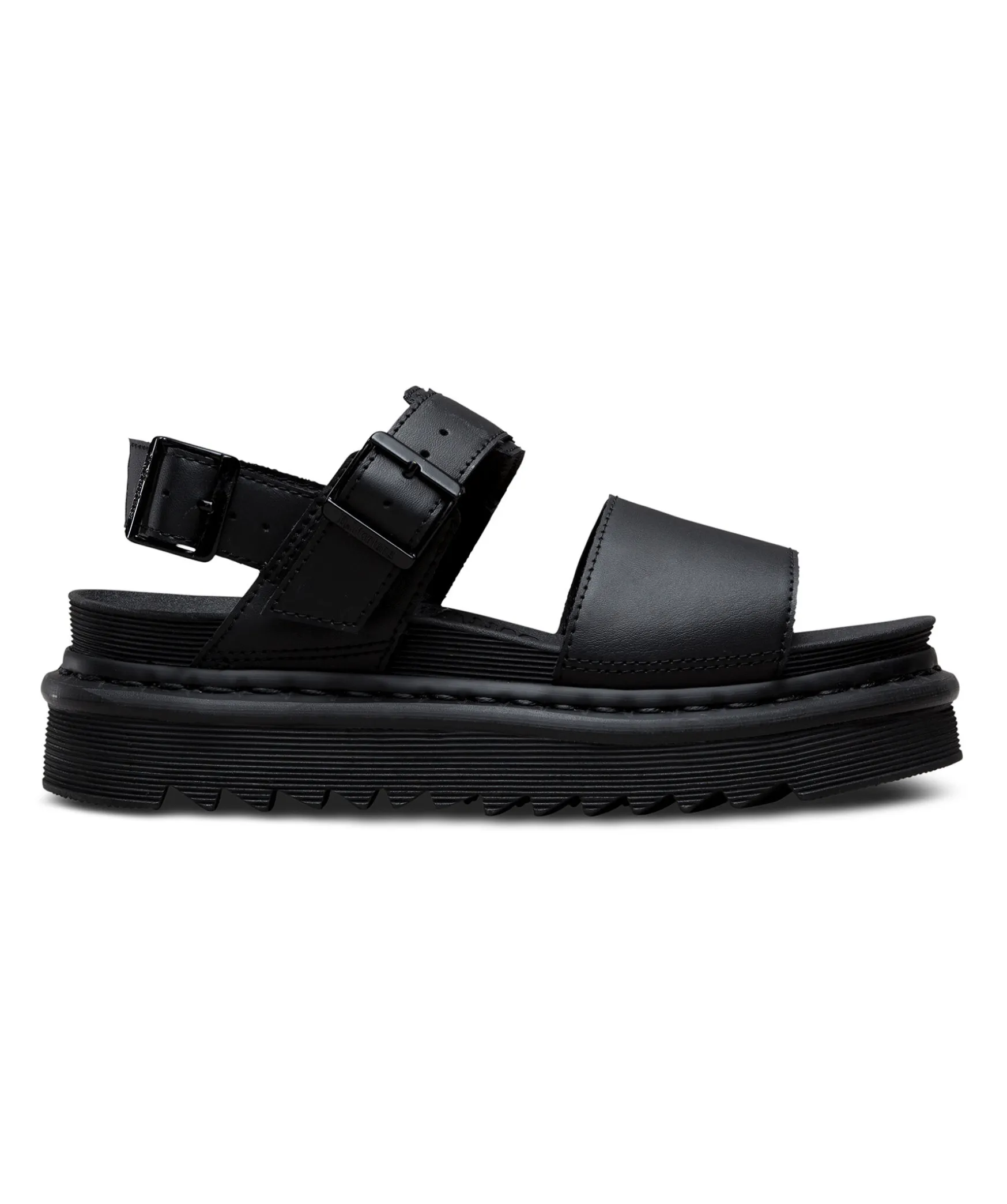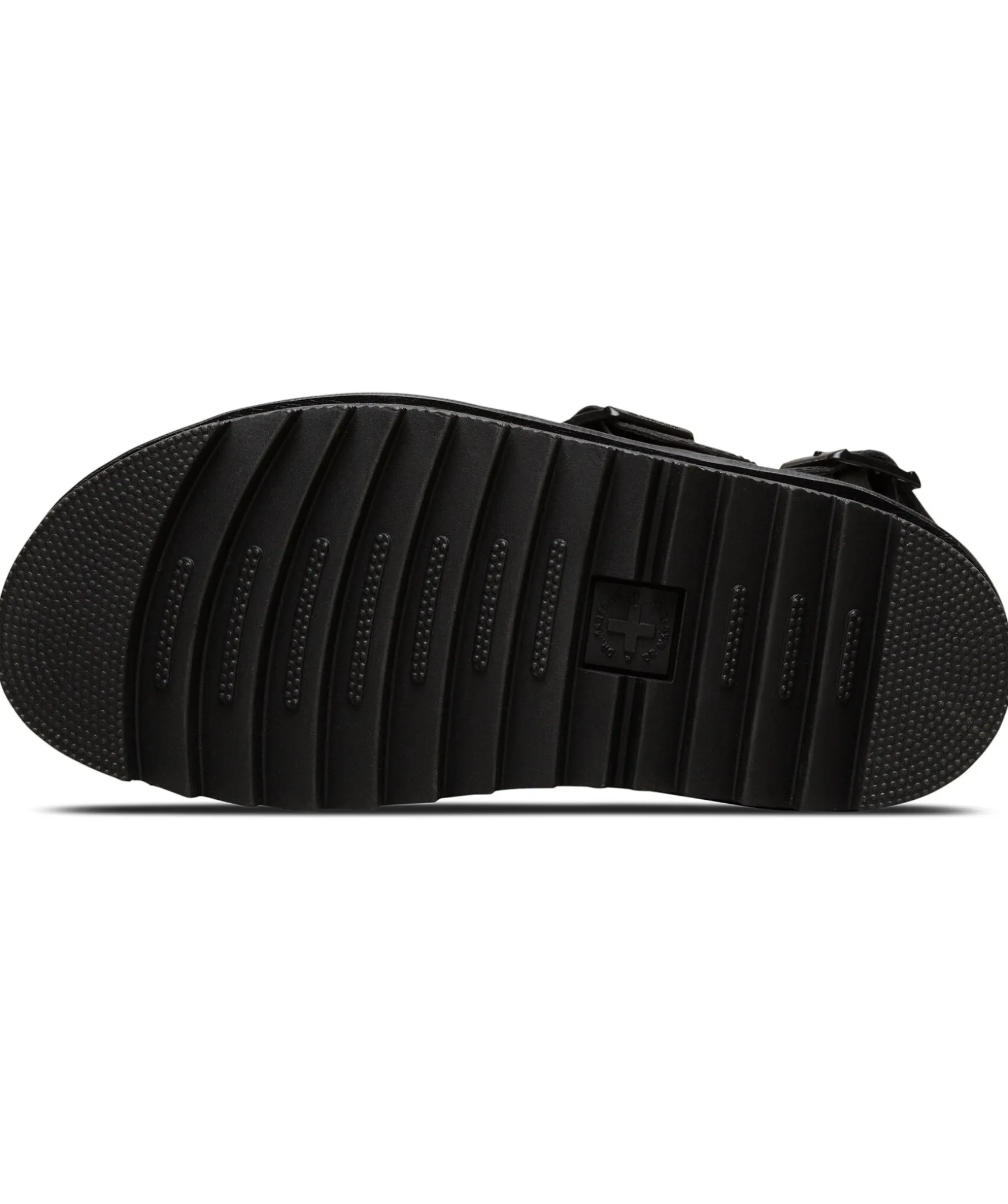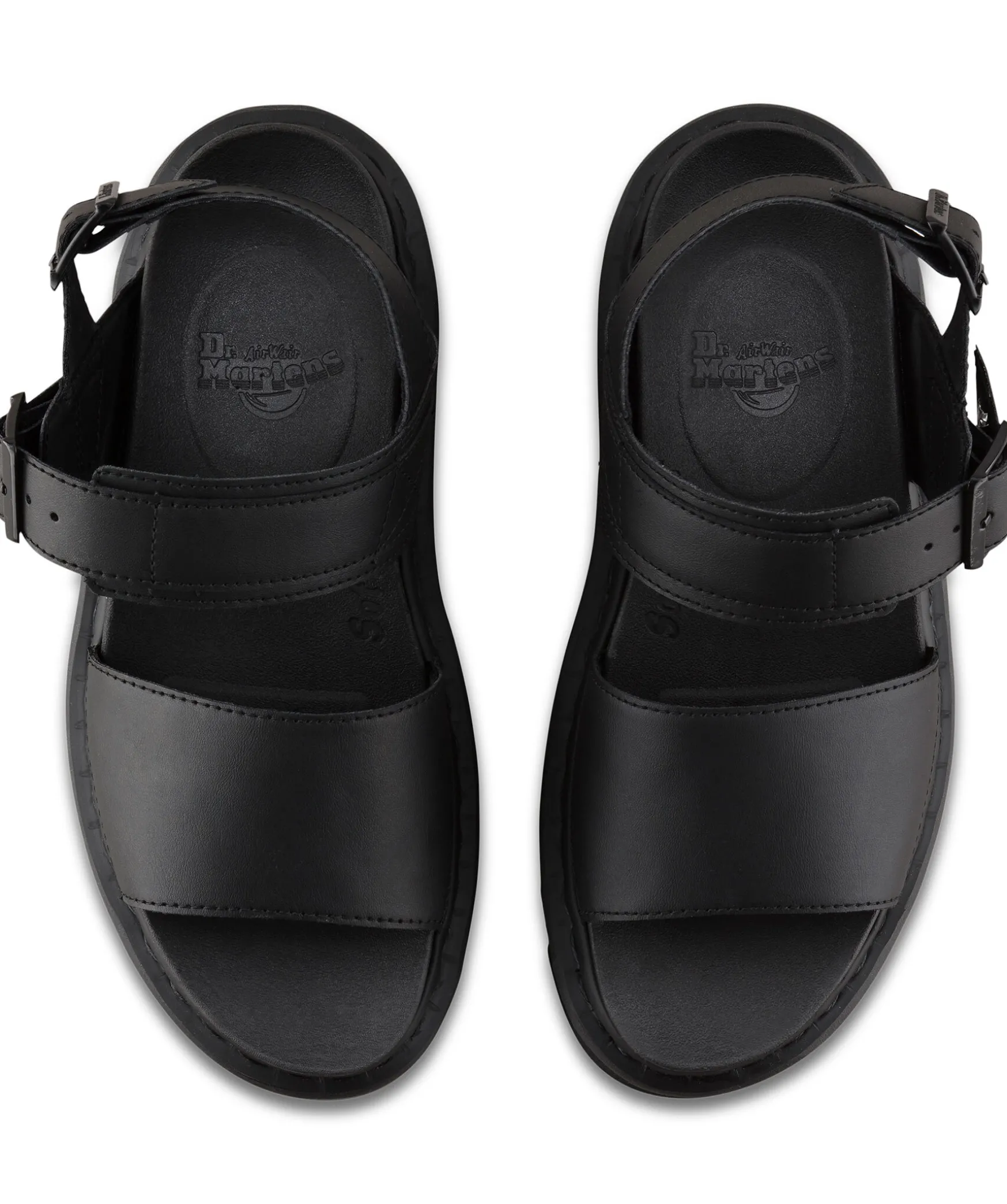 Svarta Sandaler Med Attityd Fran Dr. Martens. Extra Komfort, Med Tva Justerbara Remmar, En Superlatt Sula I Pvc Med En Svag Luftning For Ytterligare Hojd Och Som Har Ett Sicksackmonster Och En Extremt Slitstark Goodyear Svetsning. Tillverkade Av Ett Slatt, Belagt Lader Med En Matt Finish.Stora I Storlek, Sa Om Du Ar Mellan Storlekar Rekommenderar Vi Att Du Koper En Storlek Mindre.