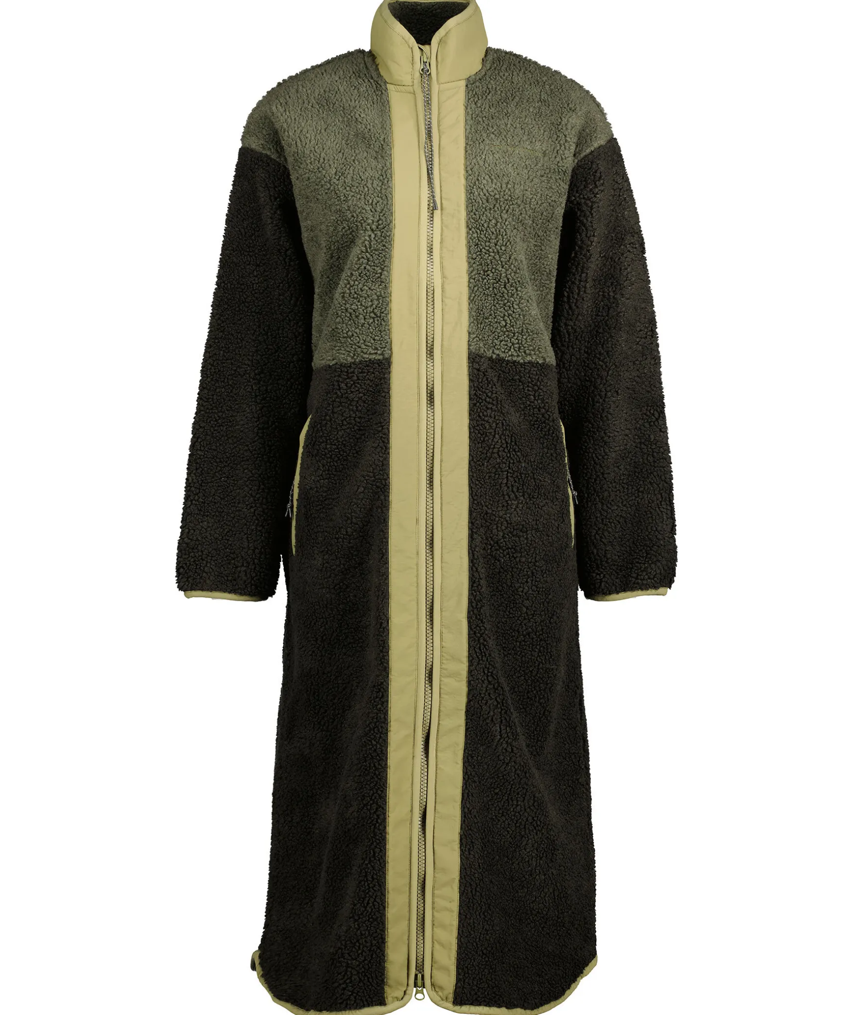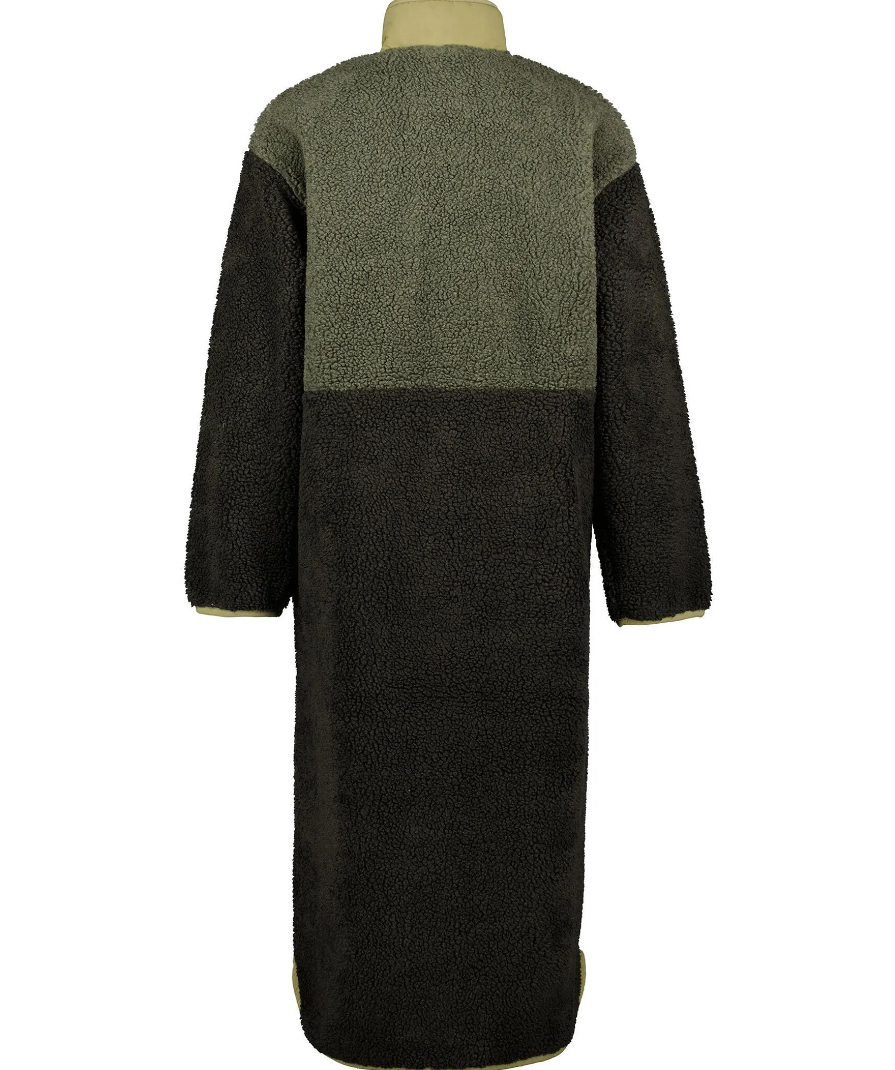 Lang Fleecejacka I Tre Grona Nyanser Fran Peak Performance. Jackan Har En Oversized-Design Och Kontrast Tyg Vid Jackans Dragkedjor. Stangs Med En Tvavagsdragkedja.Tva Framfickor Och Liten Elastisk Mudd Vid Arm- Och Plaggslutet. Plagget Ar Ca 126Cm Langt I Storlek S – Matt Fran Kragen Till Ryggslutet.