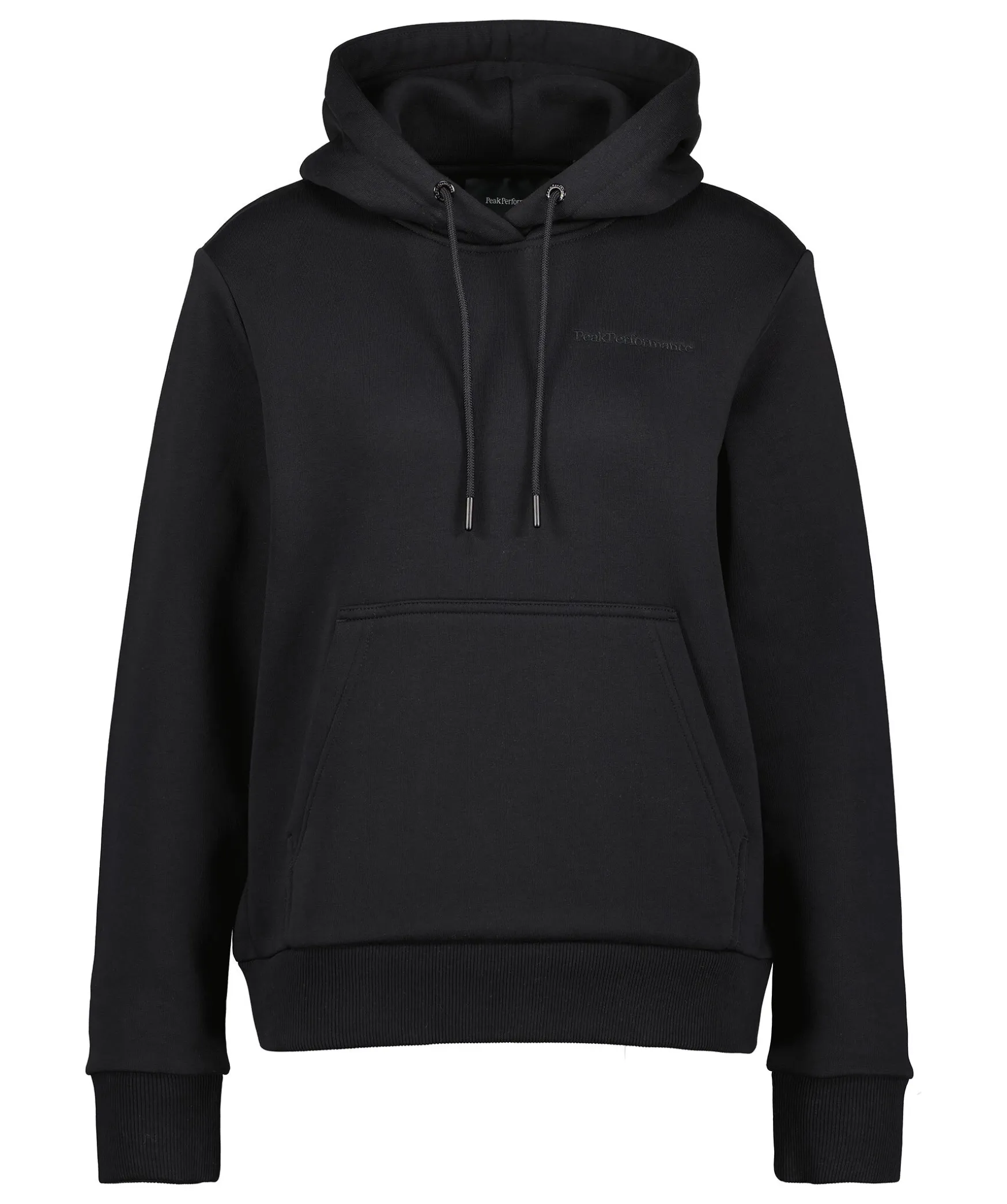 Svart Hoodie Fran Peak Performance. Tyget Ar Av Hogkvalitativ Bomullsjersey Och Har En Borstad Insida Vilket Gor Att Den Kanns Otroligt Mjuk Och Skon. Snorning I Luvan, Kanguruficka Pa Magen Och Broderad Ton-I-Ton Logga Pa Vanster Sida Av Brostet.