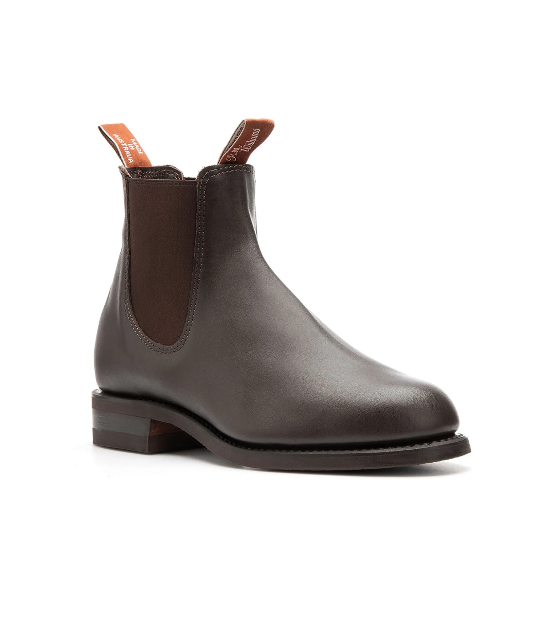 Handgjorda Boots Fran R.M. Williams Med Elastiska Sidopaneler. Elegant Silhuett Med Aningen Spetsig Framdel Och Fyrkantig Ta.