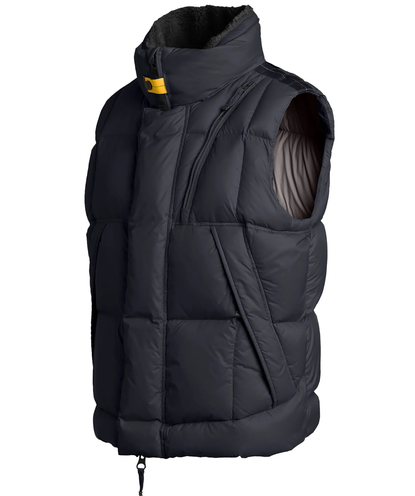 Svart Dunvast I Puffermodell Fran Parajumpers.Gjord I Nylon Med Vattenavvisande Behandling. Vasten Har En Sherpa Fodrad Krage Och En Tvavagsdragkedja Med En Gul Stormklaff Som Knapps Upp Med Tryckknapp. Tre Fickor Fram, Samt Tva Innerfickor; En Natficka Och En Med Dragkedja. Pjs-Logotyptryck Mitt I Nacken. Dragsko Vid Vastens Ena Sida Nertill. Med Ett Vattenavvisande Cordura-Skal Ar Denna Vast Den Varmaste Men Lattaste I Sitt Slag. Wilbur Ar En Oversize Puffervast For Extrema Vaderforhallanden.