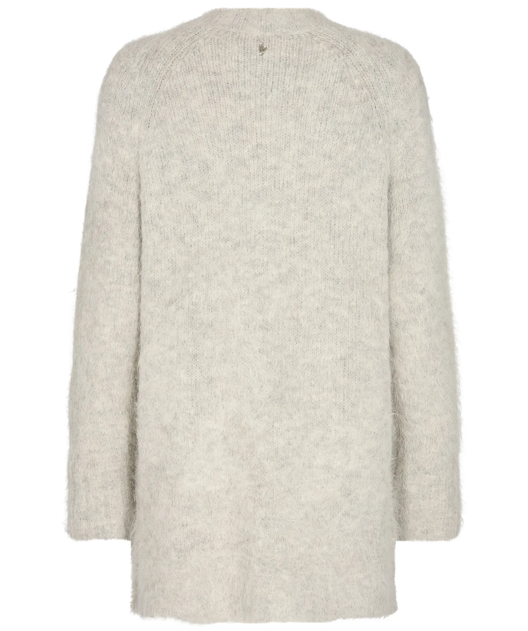 Ljusgra Cardigan Fran Mos Mosh. Denna Mjuka Och Hariga Stickade Kofta Ar Vasentlig Nar Temperaturen Sjunker. Den Ar Gjord Av En Alpackablandning Och Designad I En Lang Siluett, Avslutad Med Knappar Och Fickor Som Ser Ut I Marmor. Vi Skulle Styla Dem Med Jeans Och Kjolar Med Hog Midja Eller Som Ett Lager Ovanfor Klänningar.