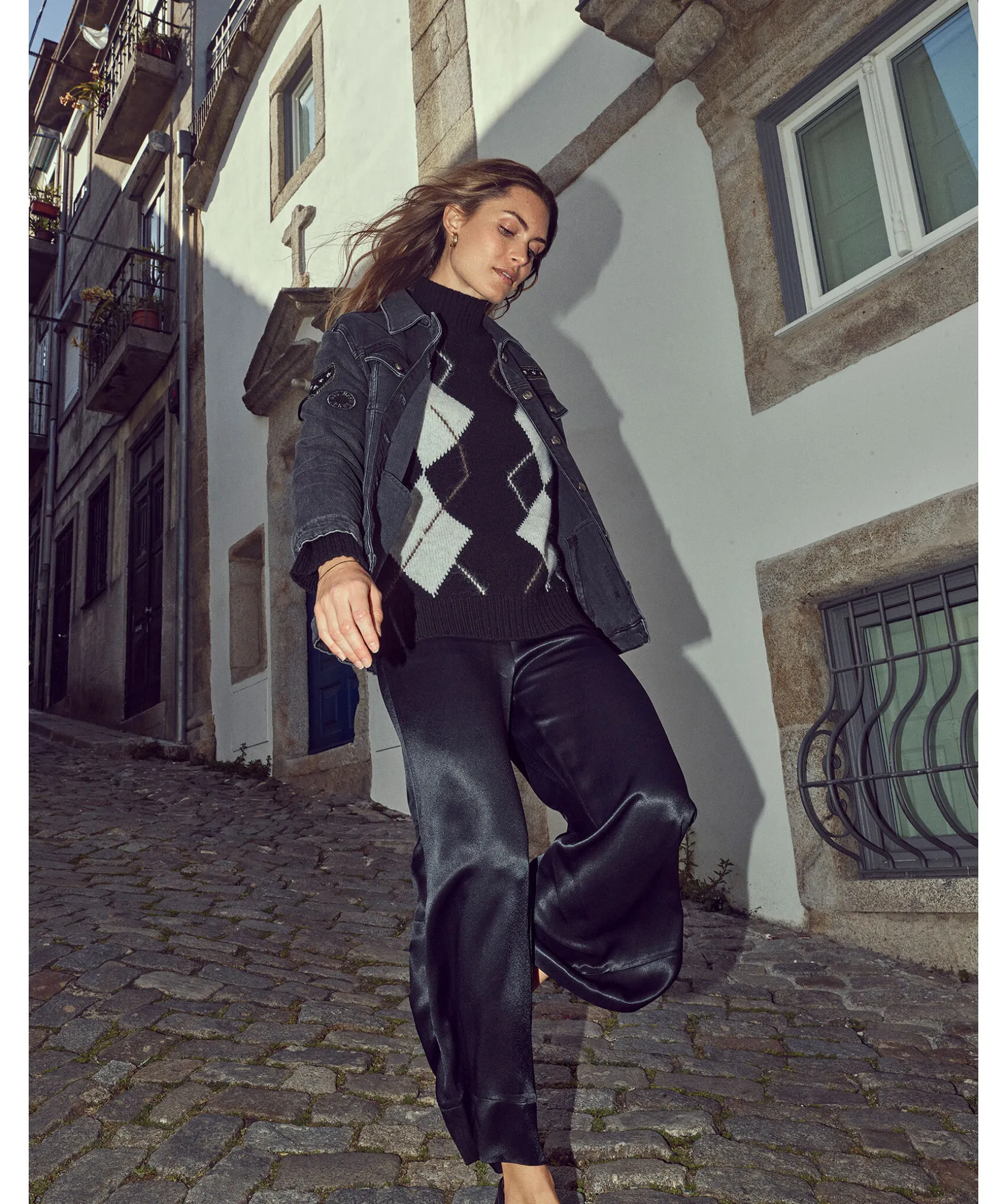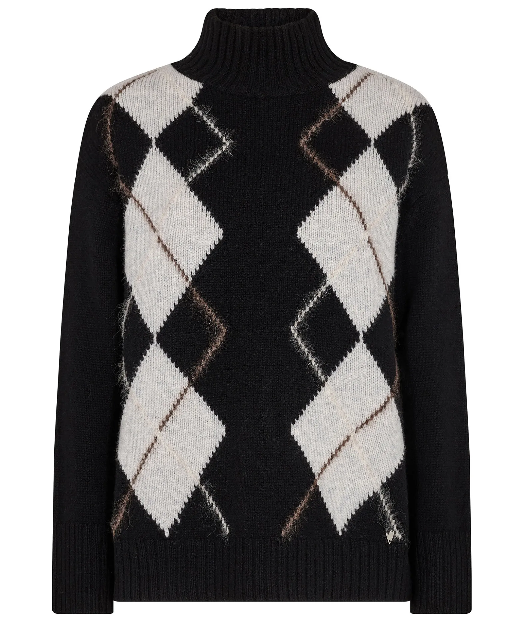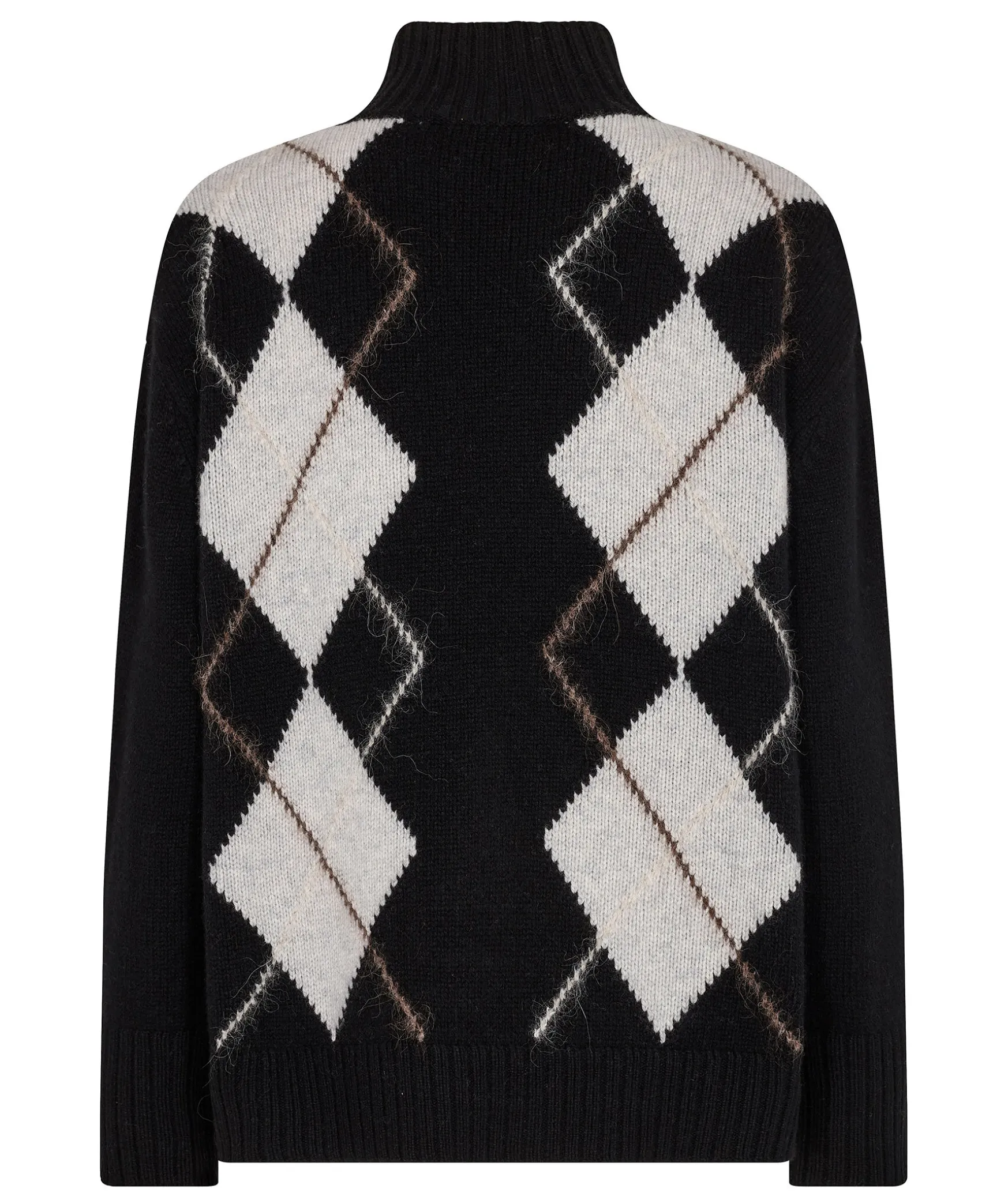 Svart Stickad Troja Med Ett Diamantmonster Fran Mos Mosh. Ribbstickade Muddar. Gjord I En Mjuk 100% Ull.