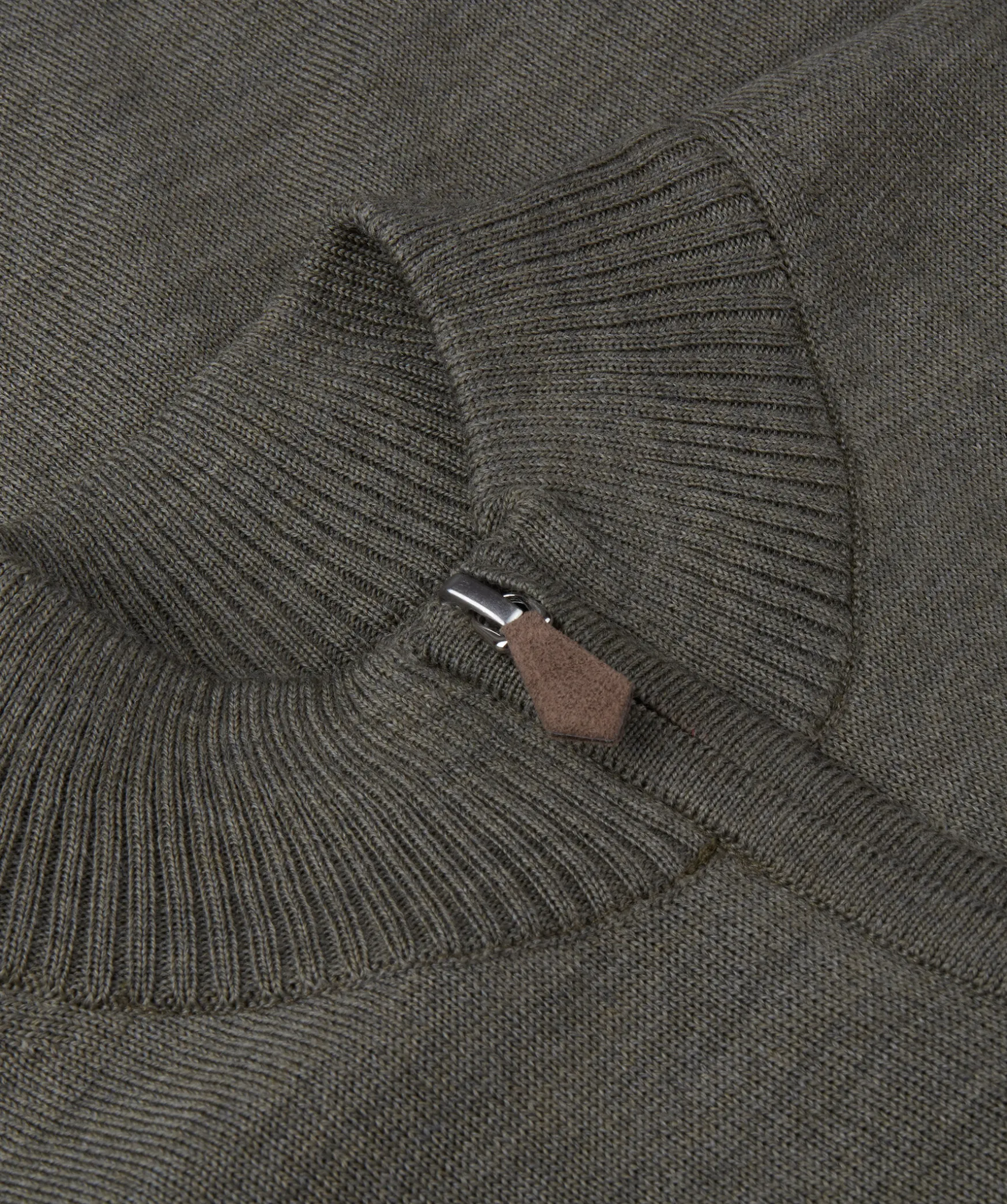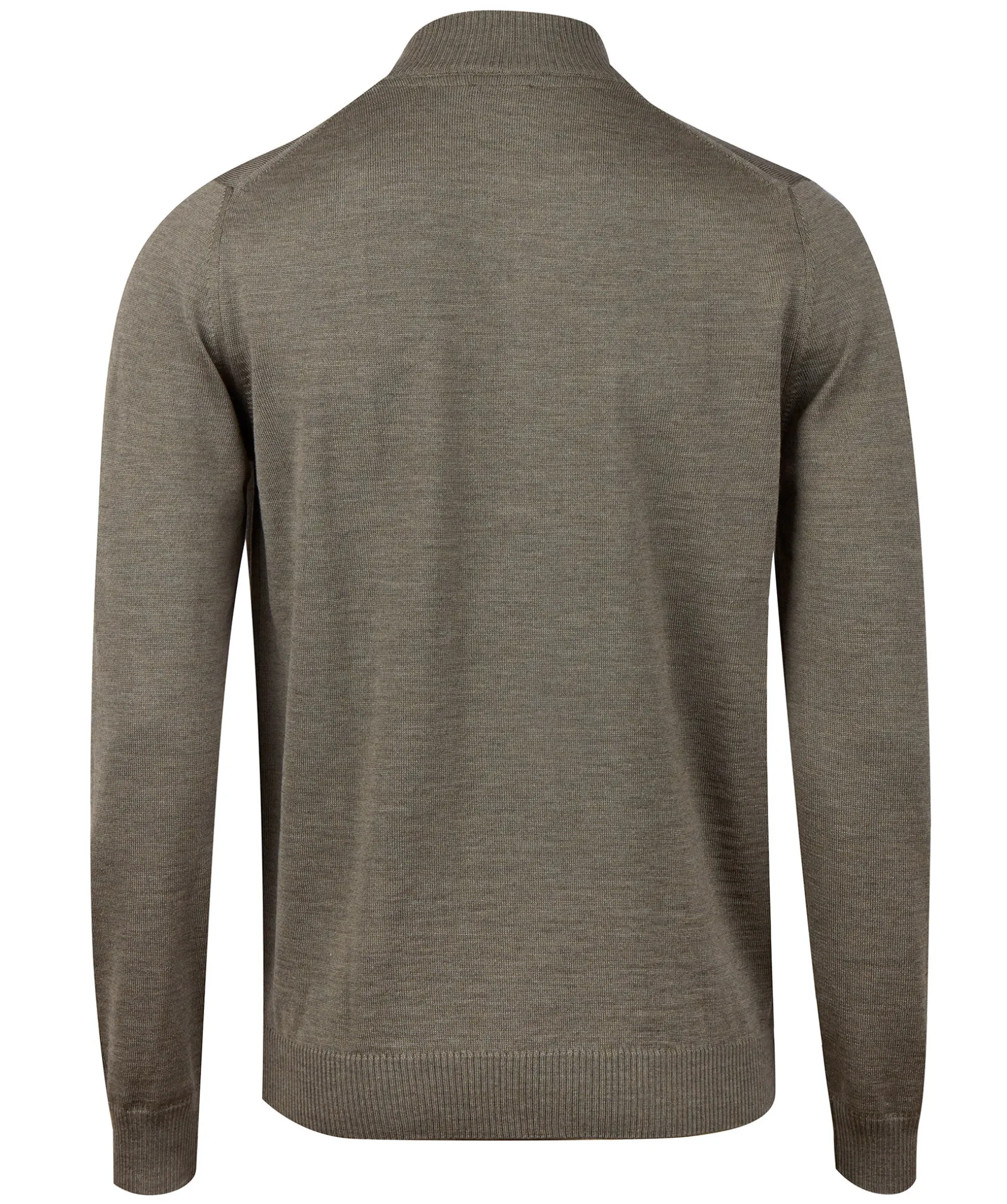 Mossgron, Klassisk Cardigan I Merinoull Fran Stenstroms. Stangs Med En Tvavagsdragkedja Framtill, Ribbstickad Krage Och Ribbade Muddar I Armslut Och Plaggslut.